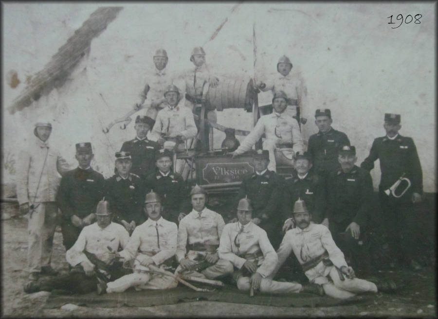 Hasičský sbor byl ve Vlksicích založen již r.1903 v počtu dvaceti zakládajících členů. První hasičská stříkačka shořela v září 1906 při požáru velkostatku.V roce 1908 zakoupil sbor novou koňskou stříkačku, která se zachovala do dnešních dnů a po válce pak první motorovou stříkačku.