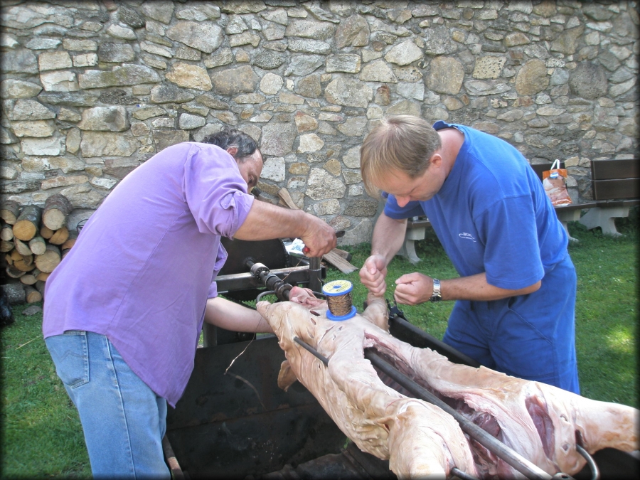Sbor píchne čuníka, koupí se pár sudů piva a každý může sníst a vypít co vydrží.
